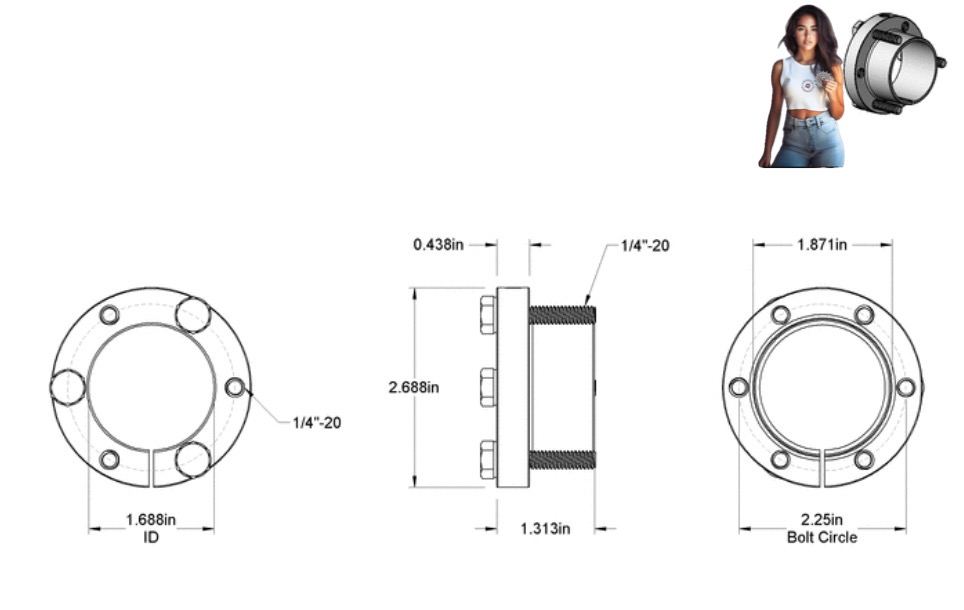 SH Series 1-11/16" Finished Bore QD Bushing for SH series Sprockets & Sheaves. QD Bushing, Black Oxide over C45 Steel Finish. 3-(1/4-20 X1-3/8) Screws. Torque Capacity 3500 lbs./in.